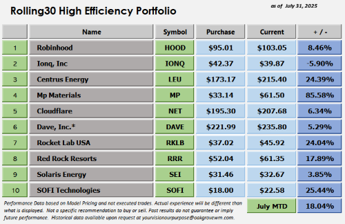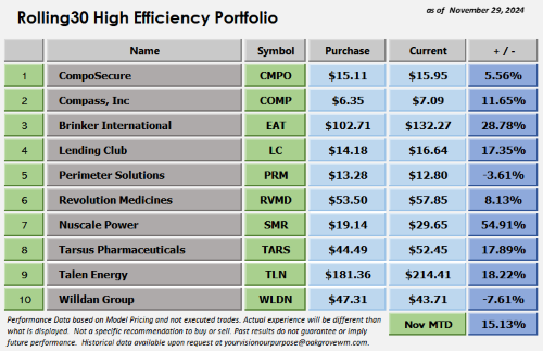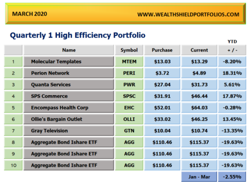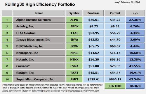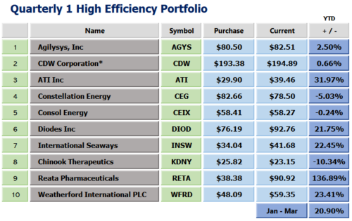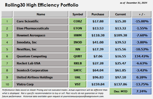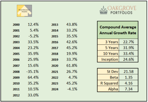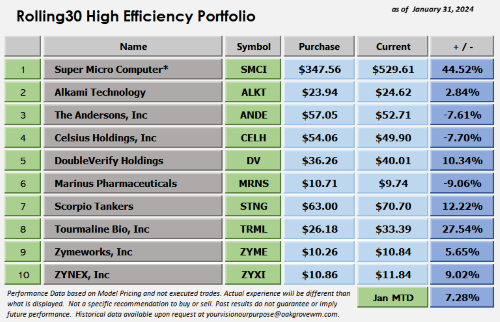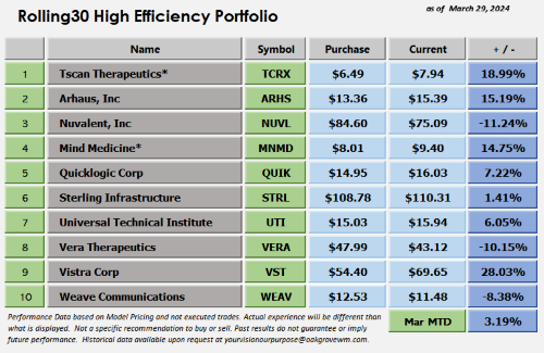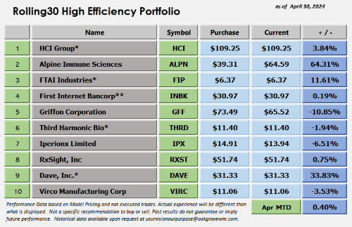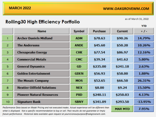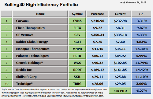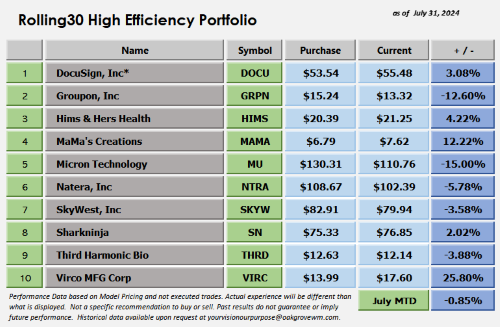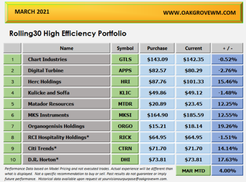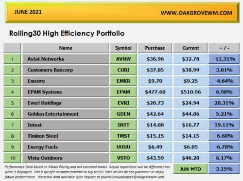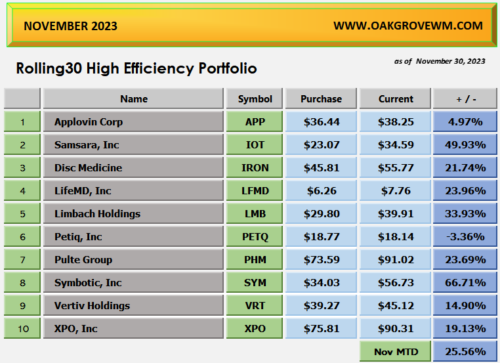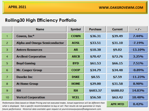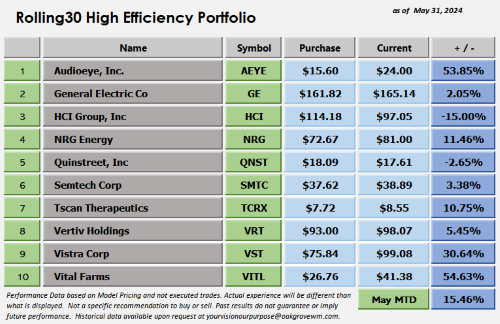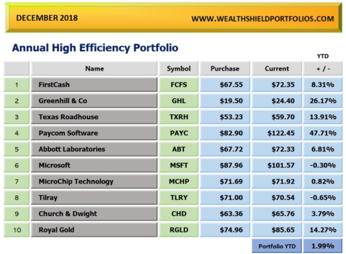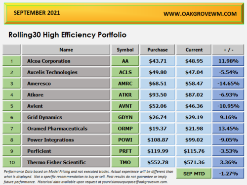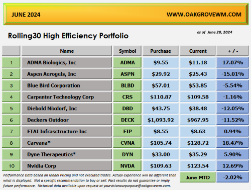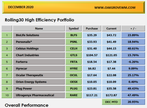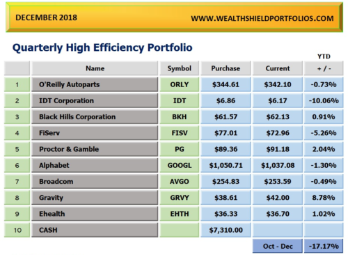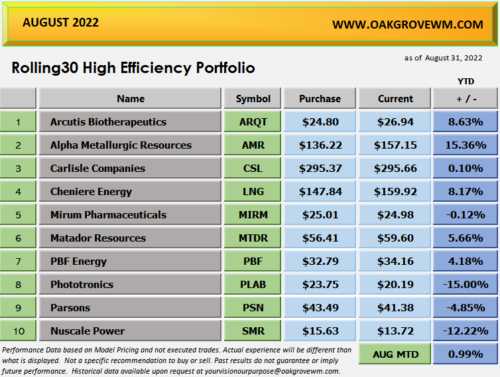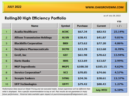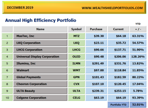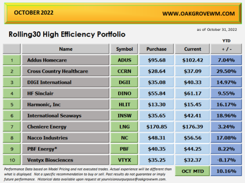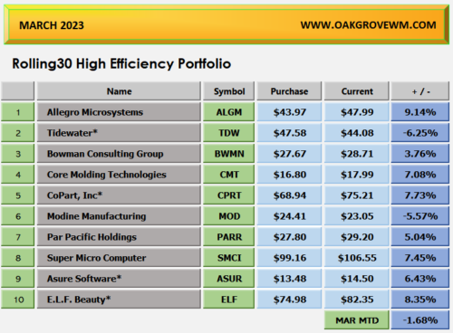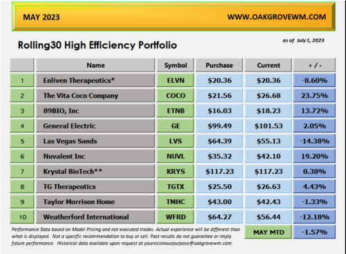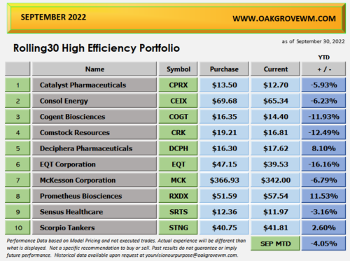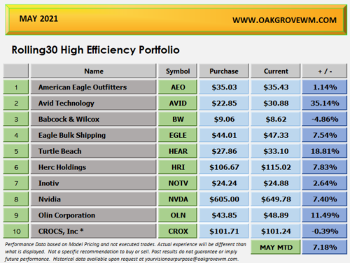 You will find below our archived Stock Listing Holding Reports for each of our High Efficiency Portfolios for the past 5 years. In each Holdings Report, they will show the stocks chosen with their respective begin and end values. For more detailed information, including a Morningstar Report regarding our High Efficiency Portfolios, please contact our office yourvisionourpurpose@oakgrovewm.com.